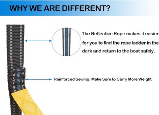 Young Marine Rope Ladder (4 Step) review - compact durable boarding aid for kayaks, inflatables & boats. Non-slip steps, stainless hardware, UV-reflective rope.