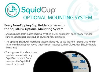 Discover the Non-Tipping Portable Universal Cup Holder! Perfect for boating, it keeps your drink secure even on rough waters. Includes optional SquidDisk Mount for textured surfaces.